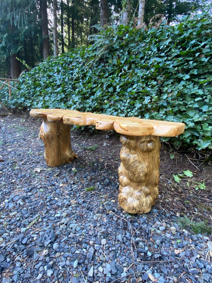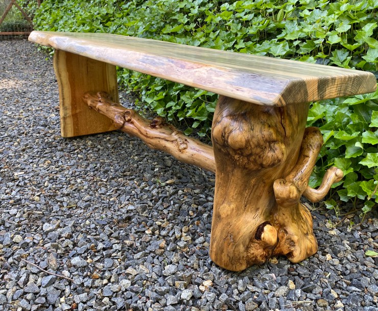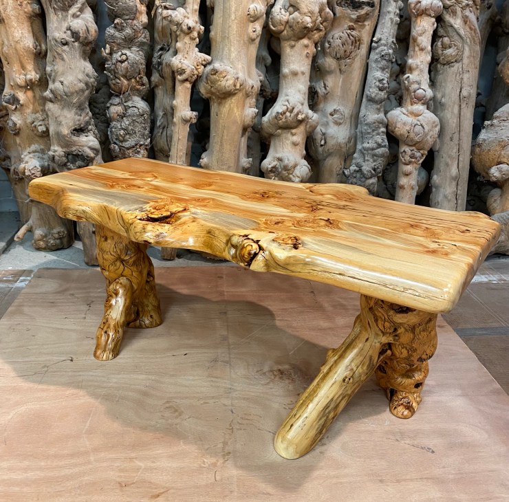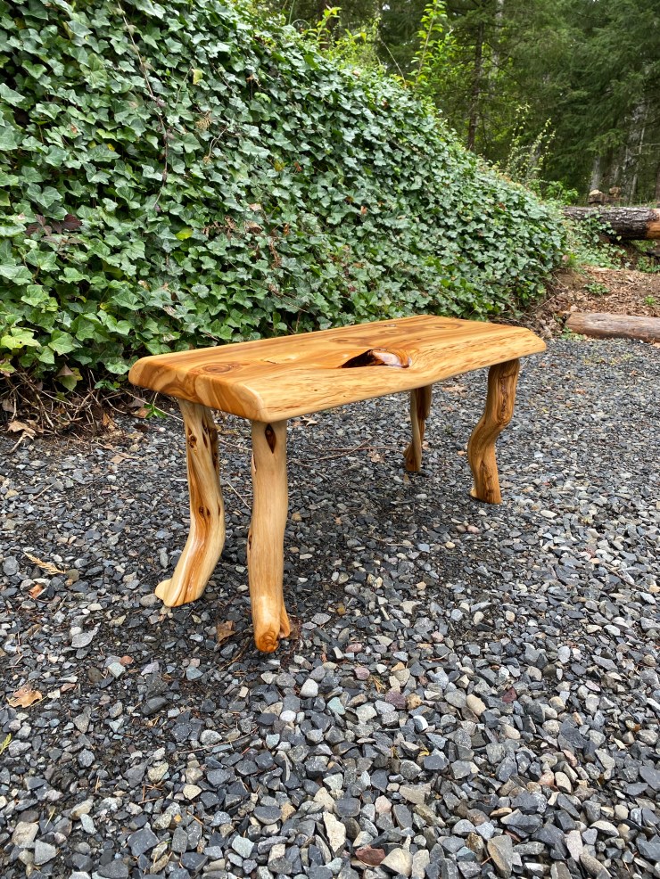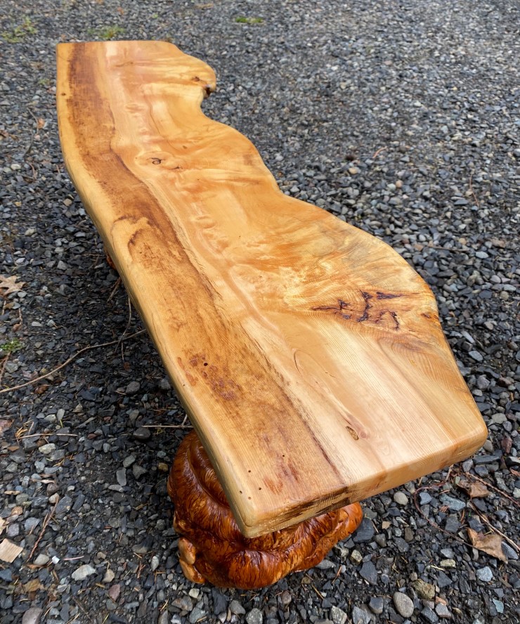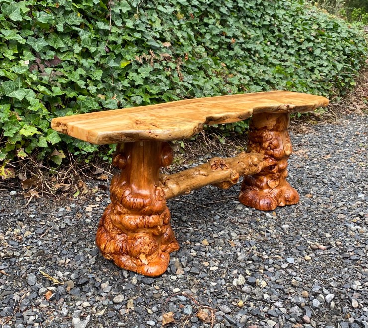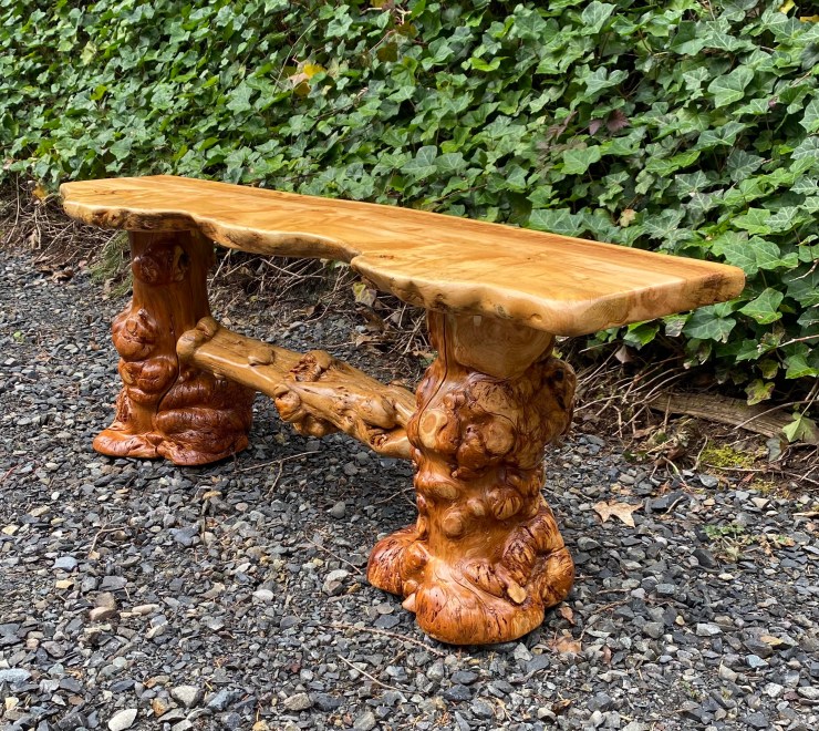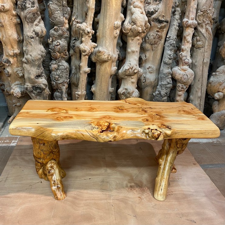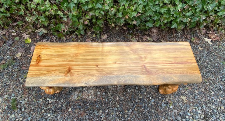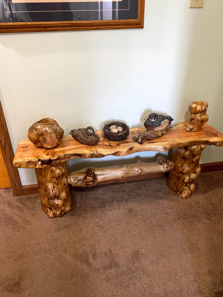 Here is a Pine Burlwood Bench I made for my friend, Shirley Deisher 😊😃