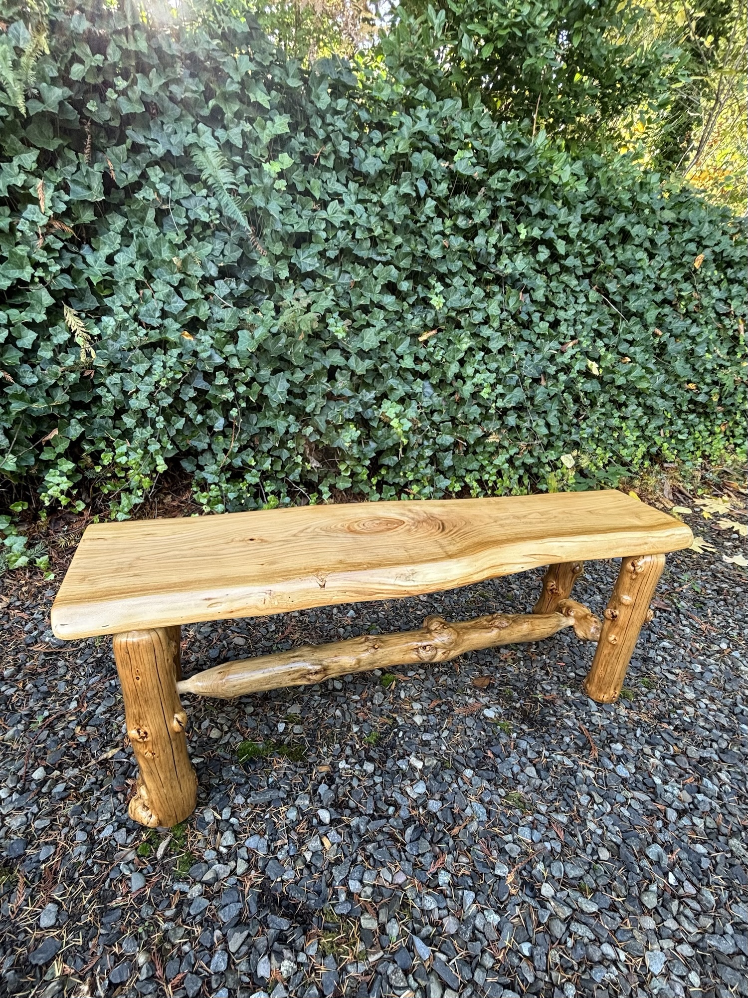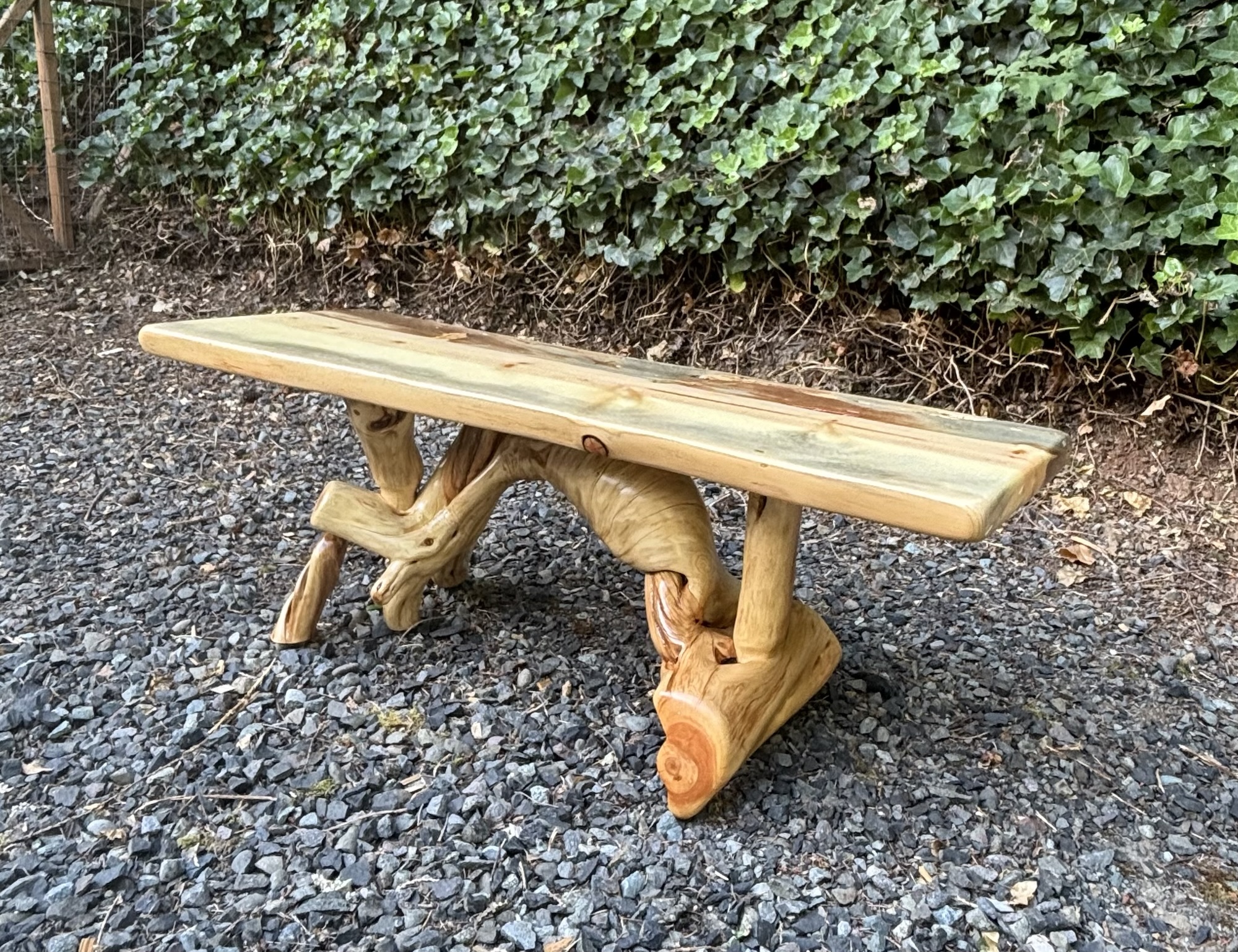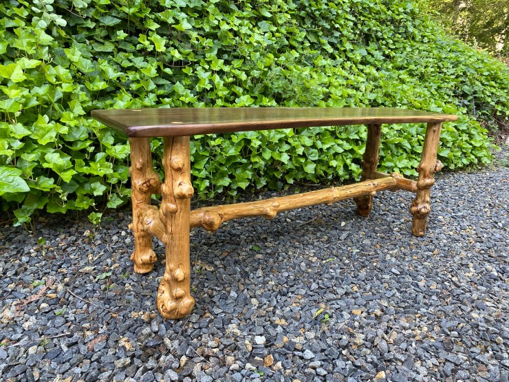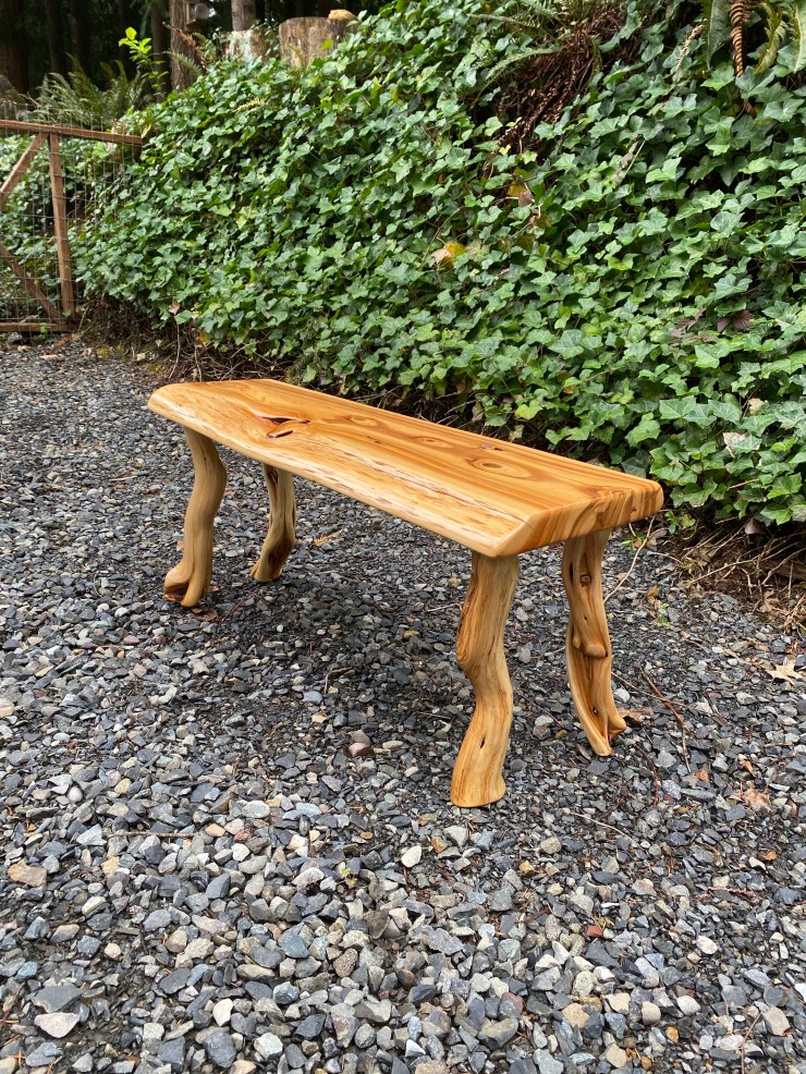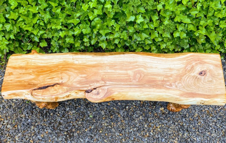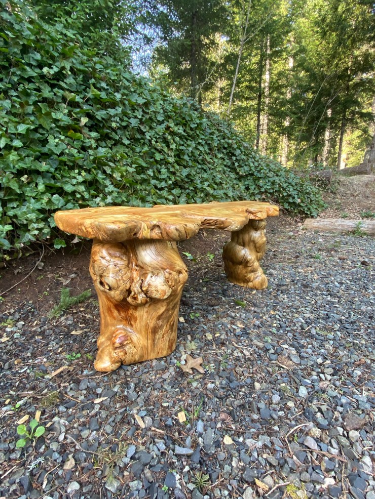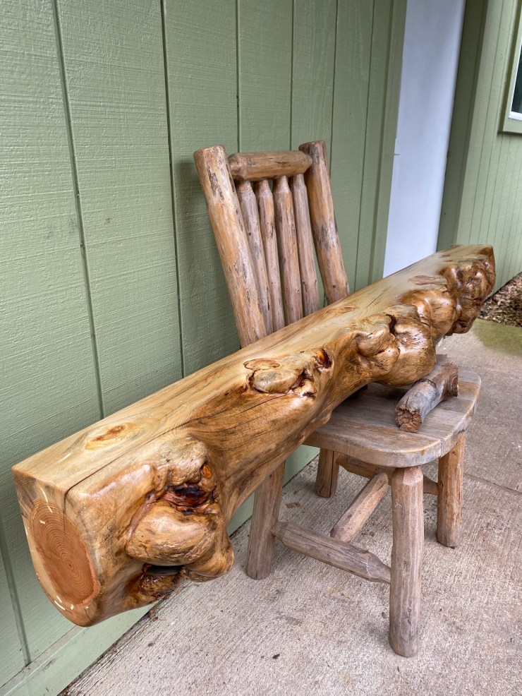 Here is a Pine Burlwood Bench I made for my friend, Shirley Deisher 😊😃