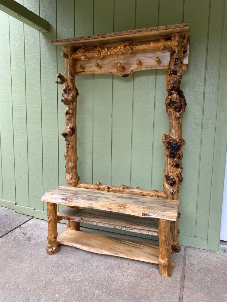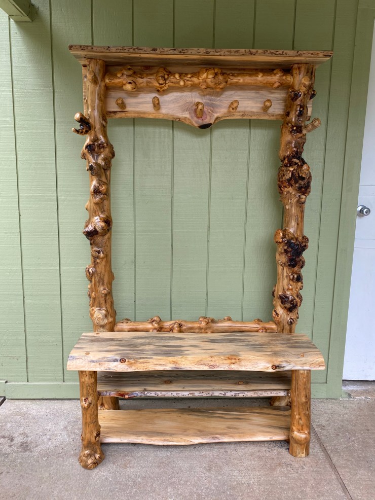 Burlwood Bench-Coatrack