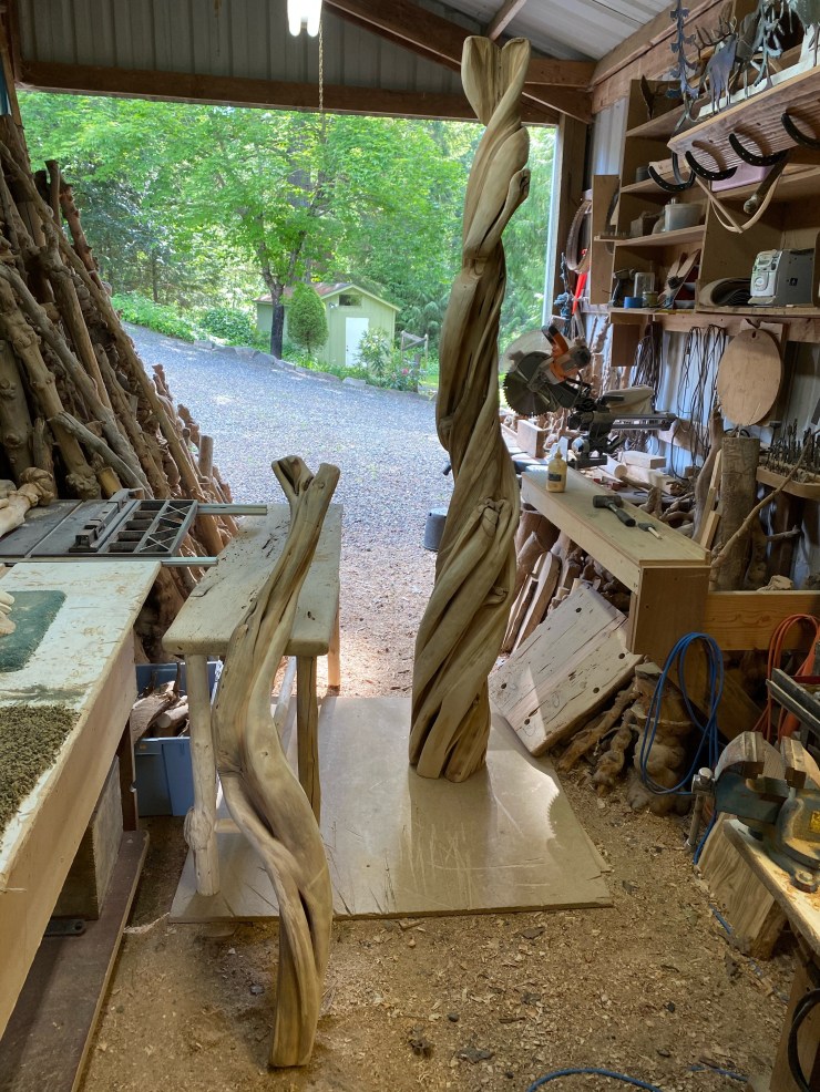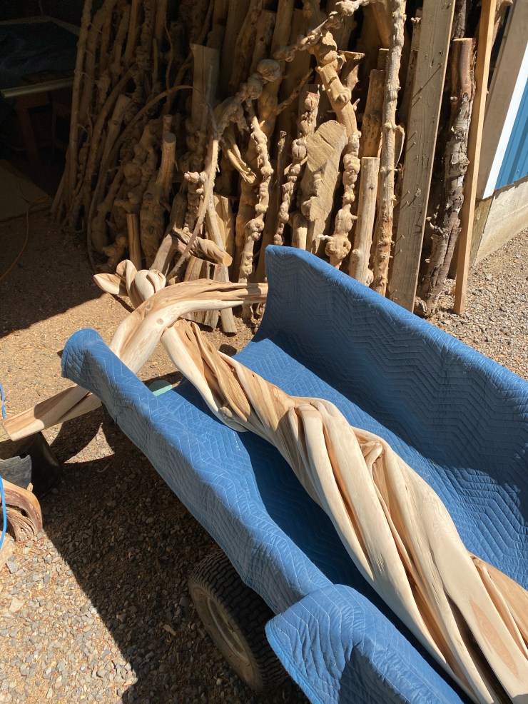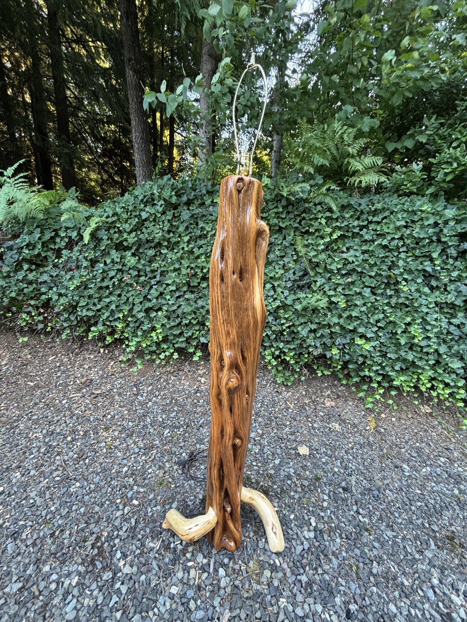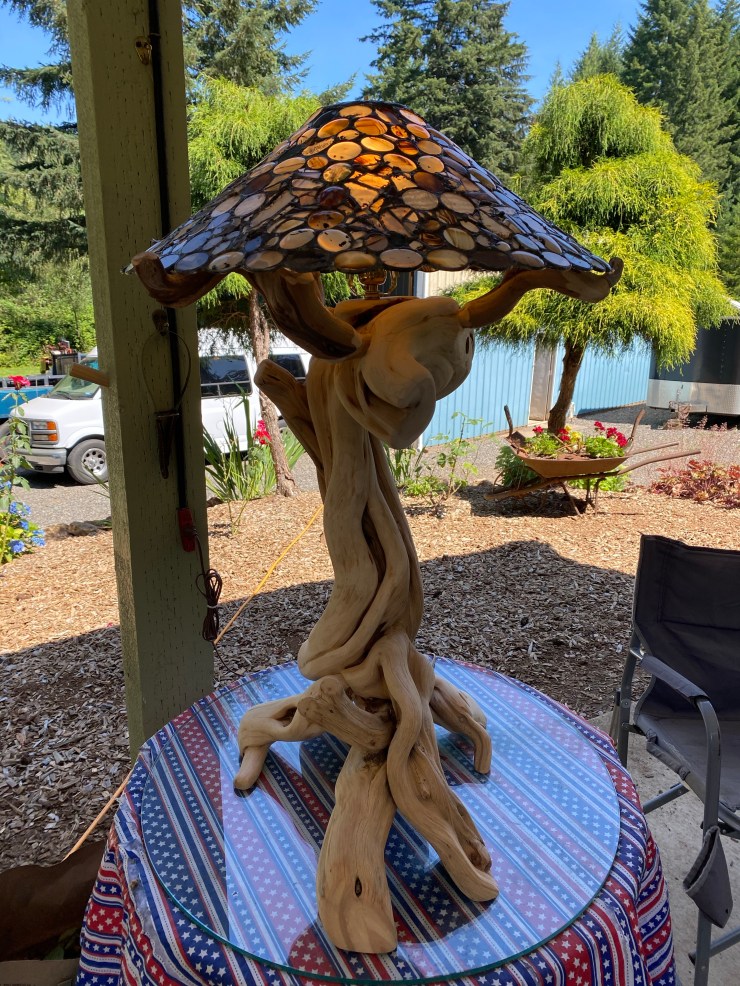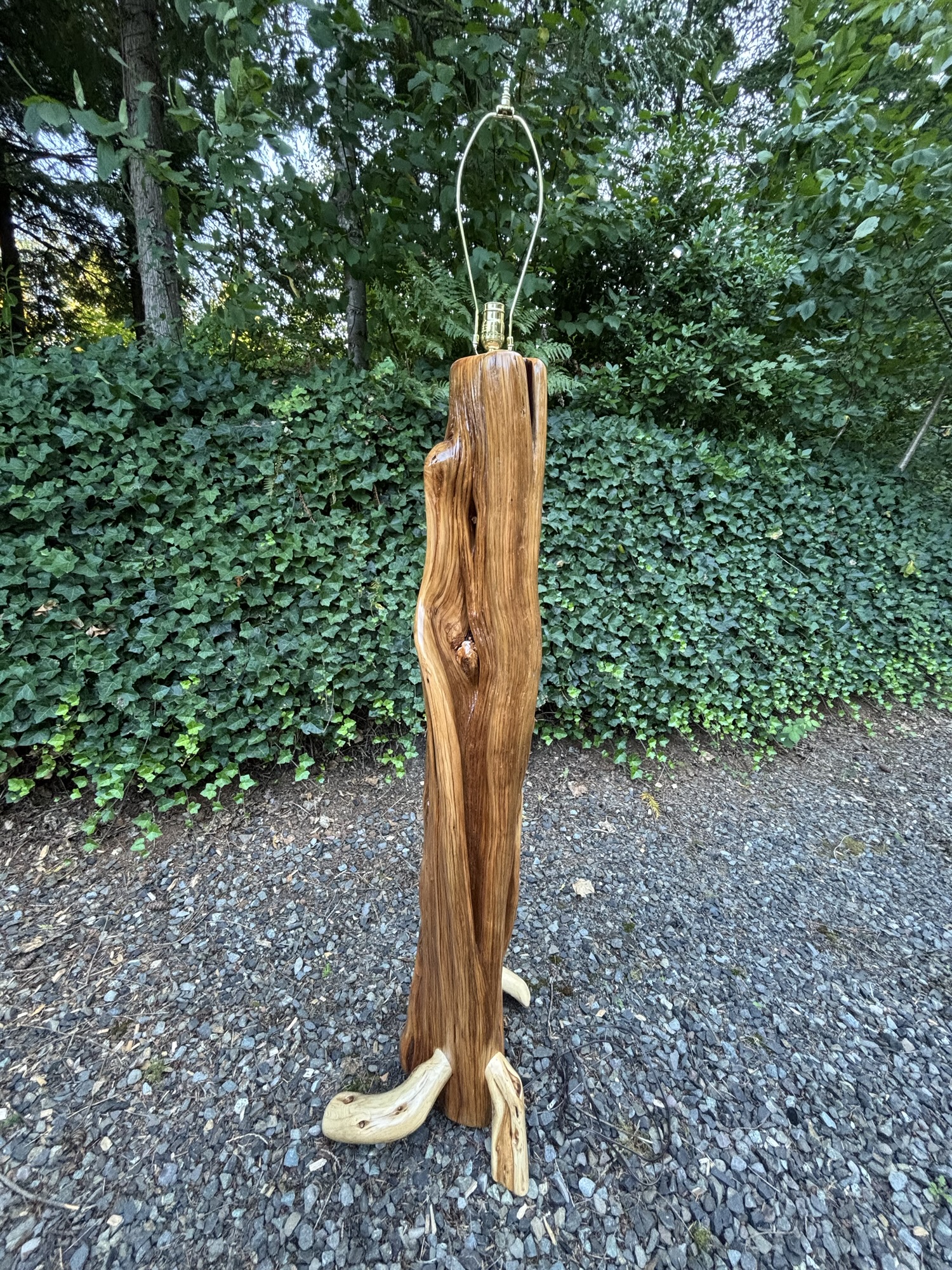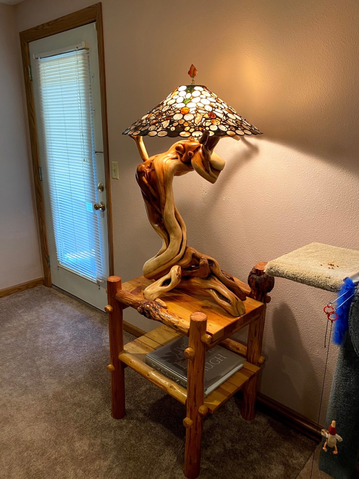 Making 2 Juniper Lamps to support these heavy glass lampshades handmade 17 years ago by Luana’s father for her and her sister. They have never been able to find lamps that they would trust to carry the weight of these cherished keepsakes…until they met me… I told them I could figure something out!😃👍