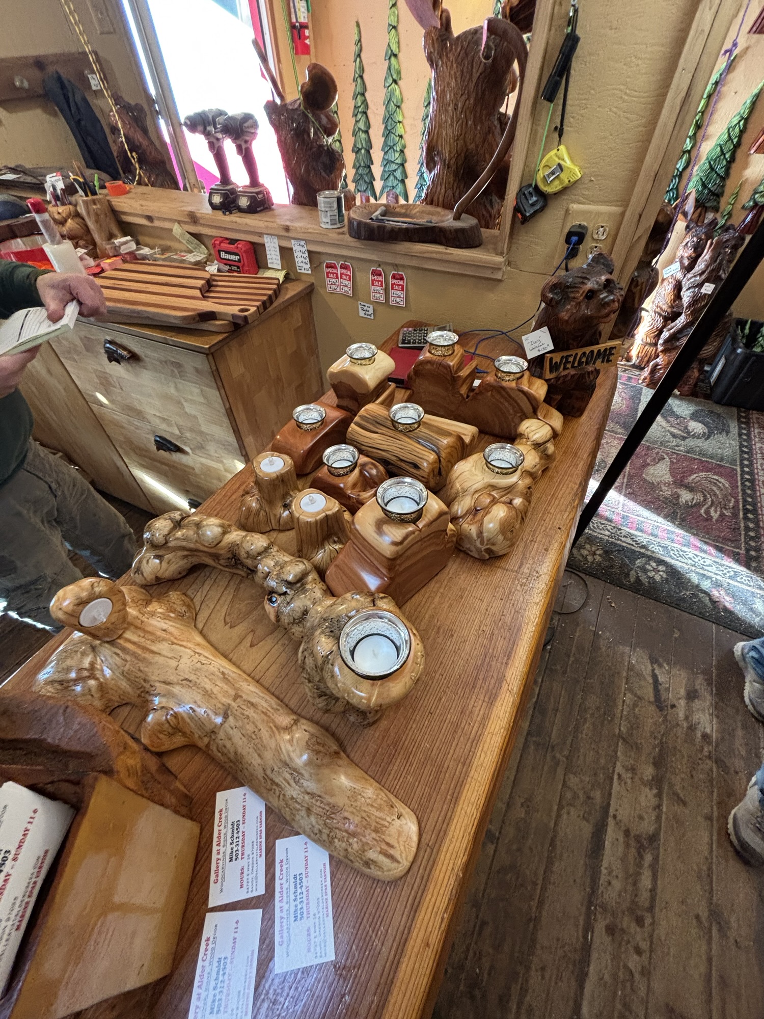 I delivered this Pine table with 4 benches, 12 candle holders and a couple charcuterie boards that my husband built to the Gallery @ Alder Creek yesterday….