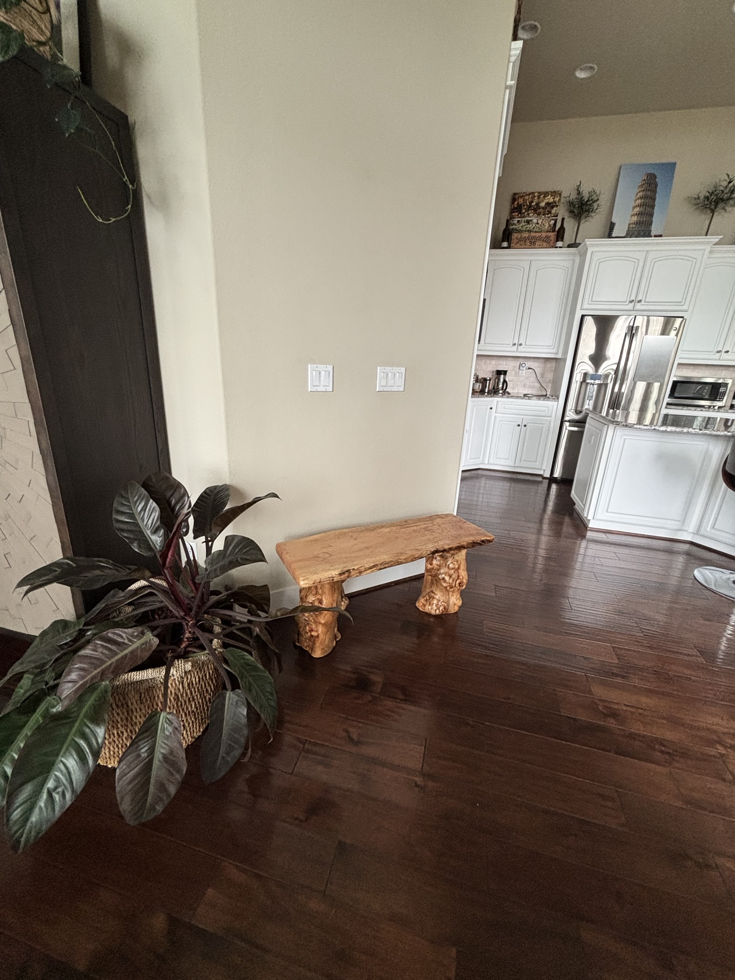 Lonnie and Luana’s Mantle in place, bench in their hallway, and their lamp in place😃